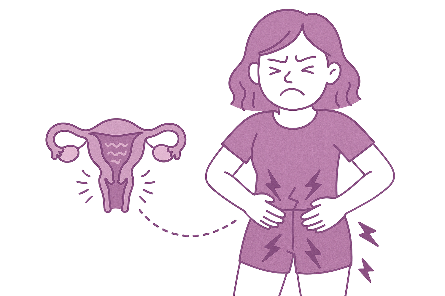När mensen börjar drar musklerna i magen ihop sig kraftigt. Detta får nerverna att skicka signaler som känns som smärta i magen, ryggen eller benen.